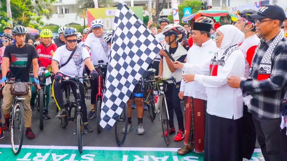 BISNISINSPIRE.COM – Gubernur Jawa Timur Khofifah Indar Parawansa memberangkatkan ratusan pesepeda yang tergabung dalam Gowes Bareng (Gobar) 1.000 Kilometer _Ride For Palestine 2_ di depan Kantor Gubernur Jawa Timur, Jalan Pahlawan 110 Surabaya, Minggu lalu.