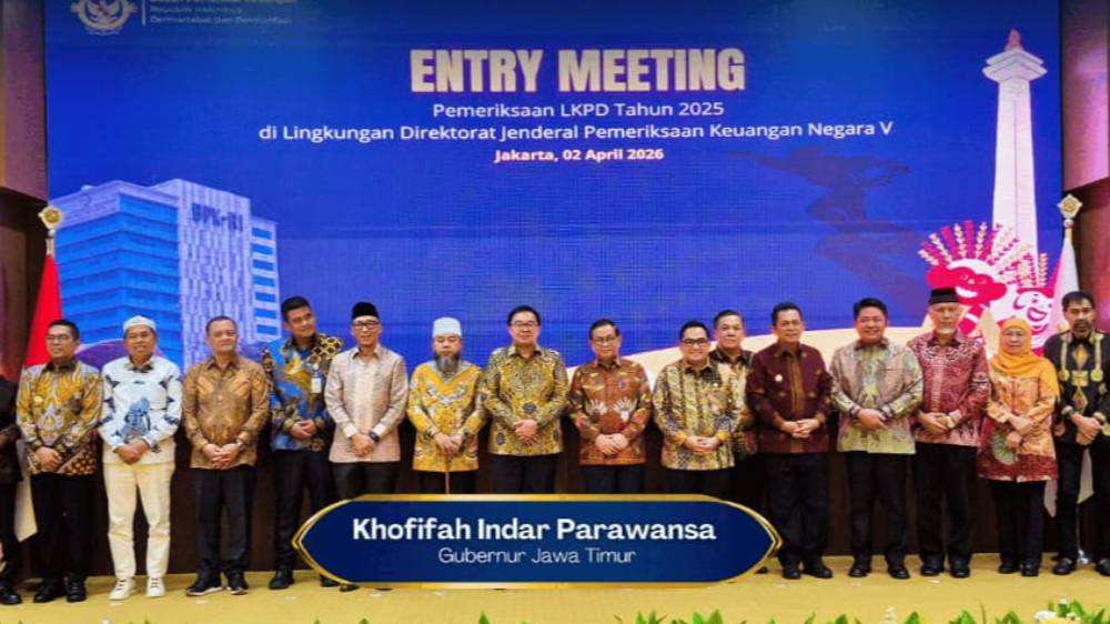 JAKARTA, 2 April 2026 – Gubernur Jawa Timur, Khofifah Indar Parawansa, menegaskan komitmennya dalam memperkuat tata kelola keuangan daerah saat menghadiri entry meeting pemeriksaan Laporan Keuangan Pemerintah Daerah (LKPD) Tahun 2025 di lingkungan Direktorat Jenderal Pemeriksaan Keuangan Negara V, BPK RI, Kamis (2/4).