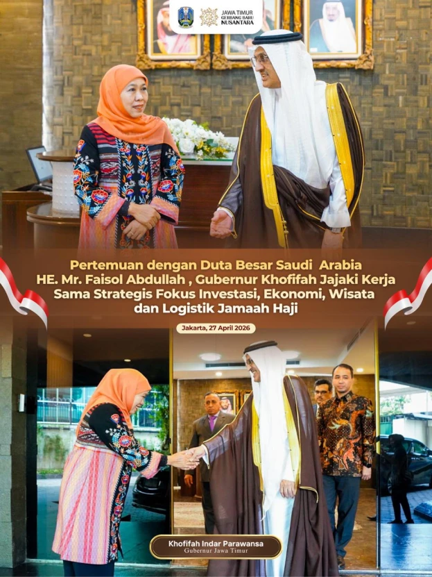 “Pertemuan ini menjadi kesempatan strategis untuk membangun kerja sama di bidang ekonomi dan pariwisata, terutama membuka ruang investasi dari pelaku usaha Arab Saudi ke Indonesia, khususnya Jawa Timur,” ujarnya.